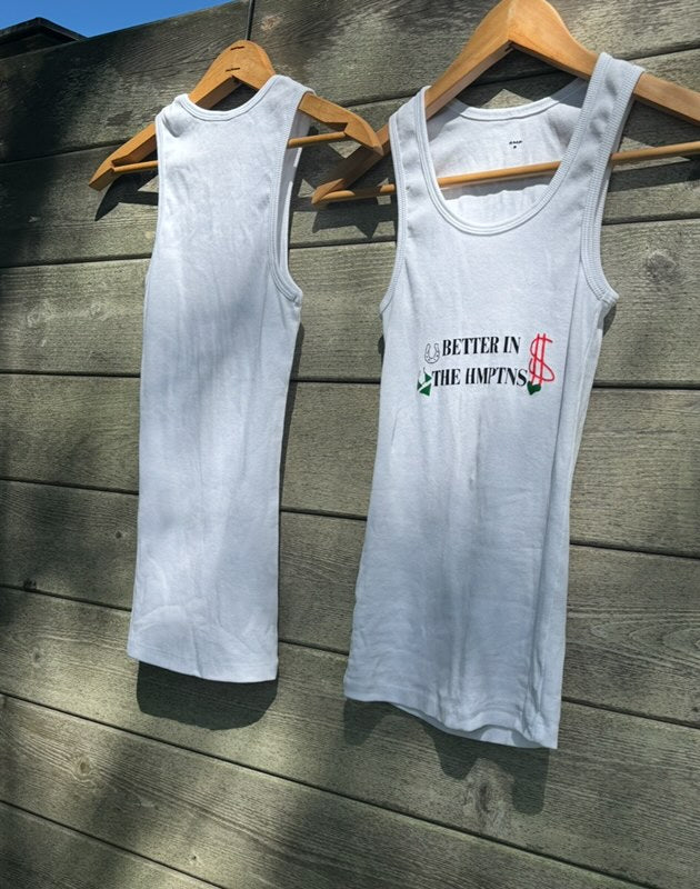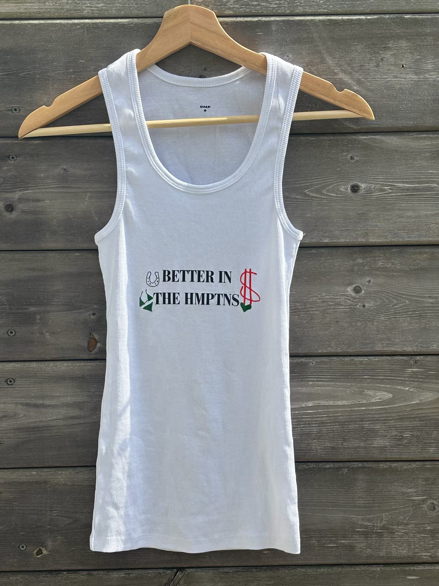 -2x1 ribbed cotton tank w signature BTTR IN THE HAMPTONS logo in WHITE